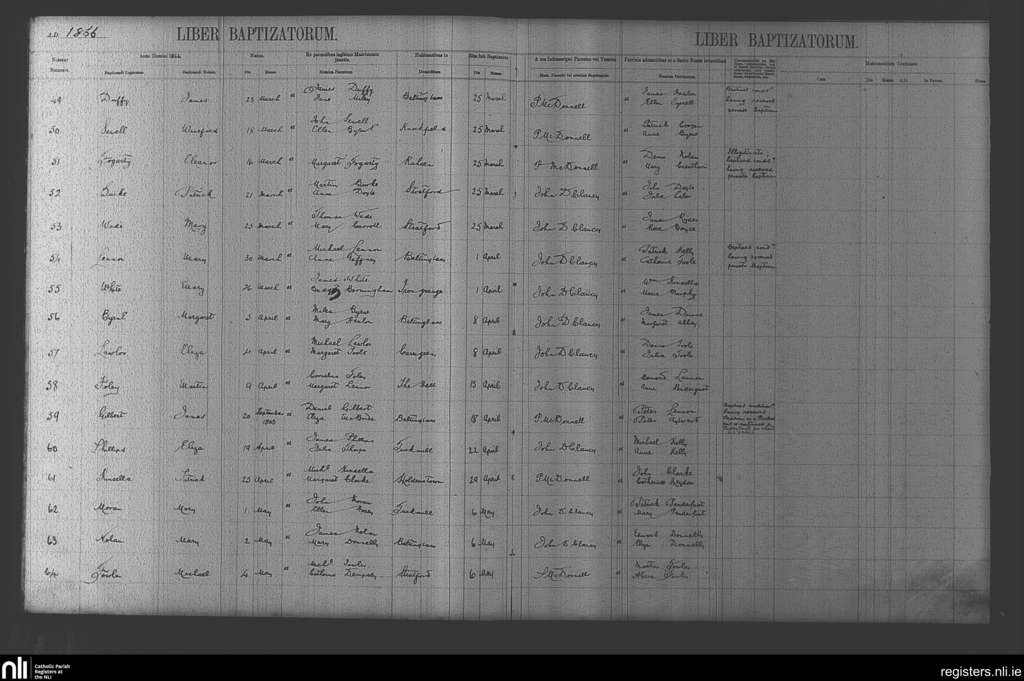 Baltinglass; County of Kildare, Wicklow; Diocese of Kildare and Leighlin. Baptisms, Mar. 1866 to May 1866