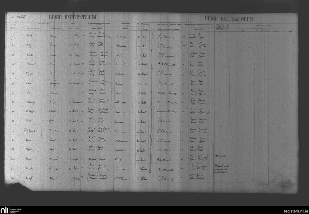 Baltinglass; County of Kildare, Wicklow; Diocese of Kildare and Leighlin. Baptisms, July 1866 to Oct. 1866
