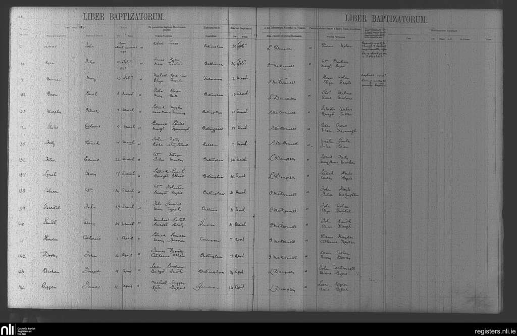 Baltinglass; County of Kildare, Wicklow; Diocese of Kildare and Leighlin. Baptisms, Feb. 1867 to Apr. 1867