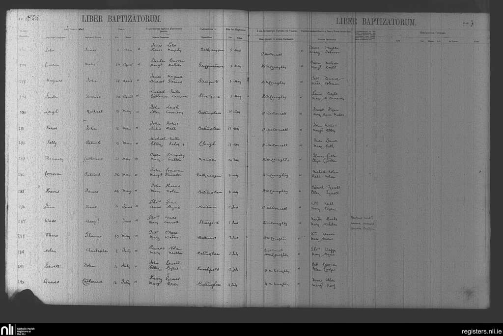Baltinglass; County of Kildare, Wicklow; Diocese of Kildare and Leighlin. Baptisms, May 1868 to July 1868