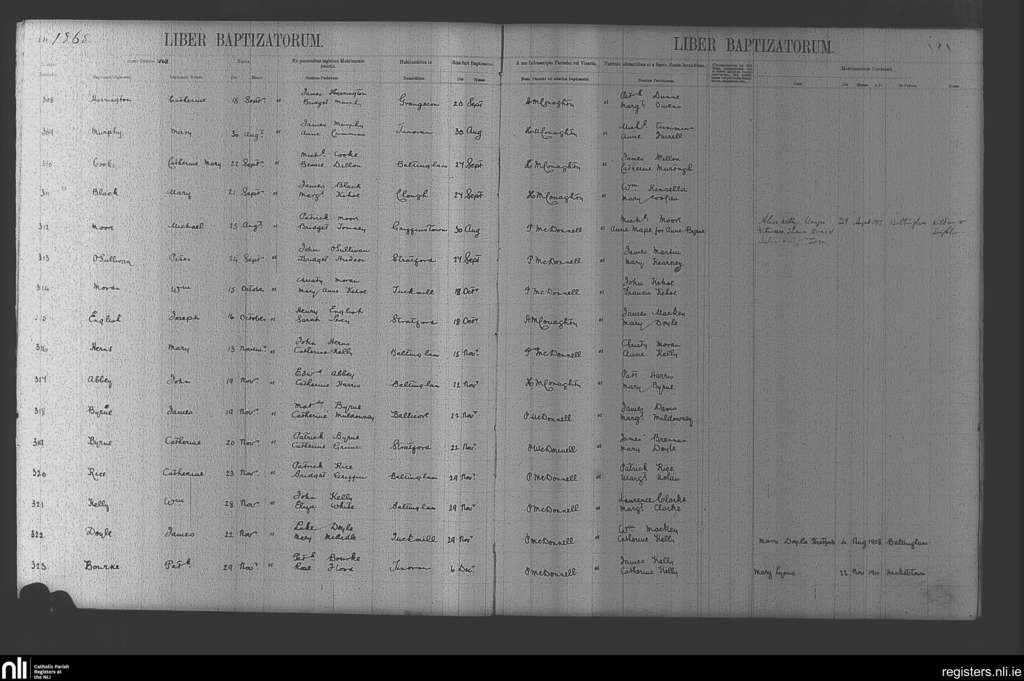 Baltinglass; County of Kildare, Wicklow; Diocese of Kildare and Leighlin. Baptisms, Aug. 1868 to Dec. 1868