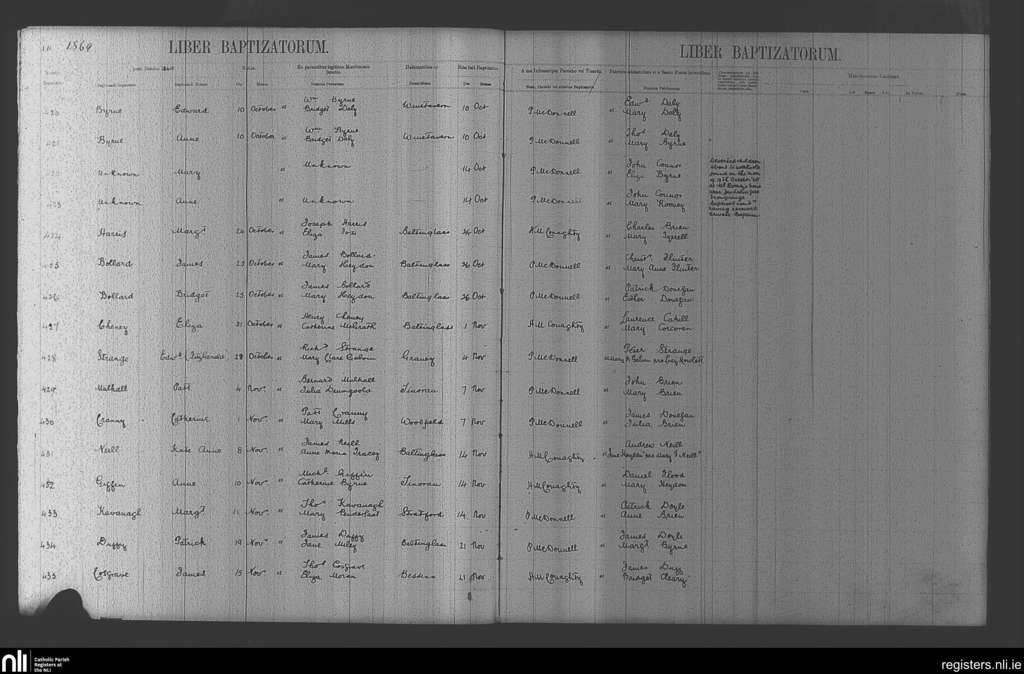 Baltinglass; County of Kildare, Wicklow; Diocese of Kildare and Leighlin. Baptisms, Oct. 1869 to Nov. 1869