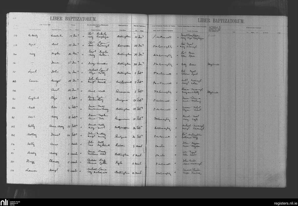 Baltinglass; County of Kildare, Wicklow; Diocese of Kildare and Leighlin. Baptisms, Jan. 1871 to Mar. 1871