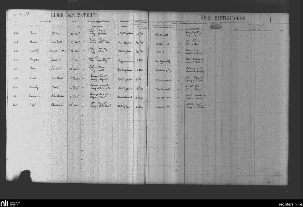 Baltinglass; County of Kildare, Wicklow; Diocese of Kildare and Leighlin. Baptisms, Nov. 1871 to Dec. 1871