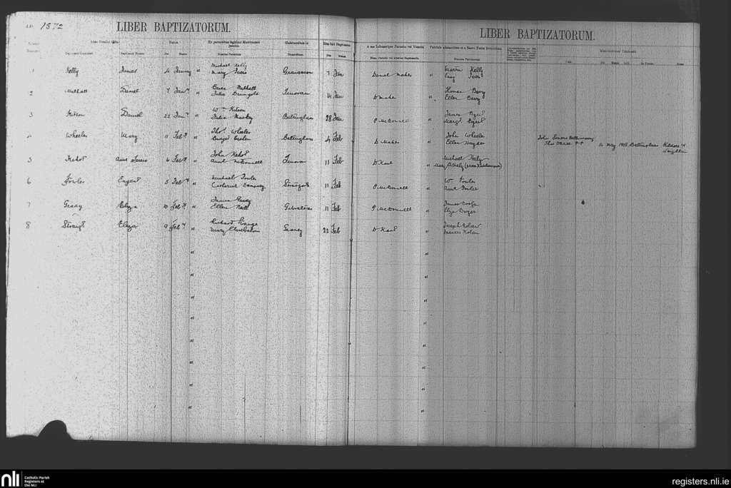 Baltinglass; County of Kildare, Wicklow; Diocese of Kildare and Leighlin. Baptisms, Jan. 1872 to Feb. 1872