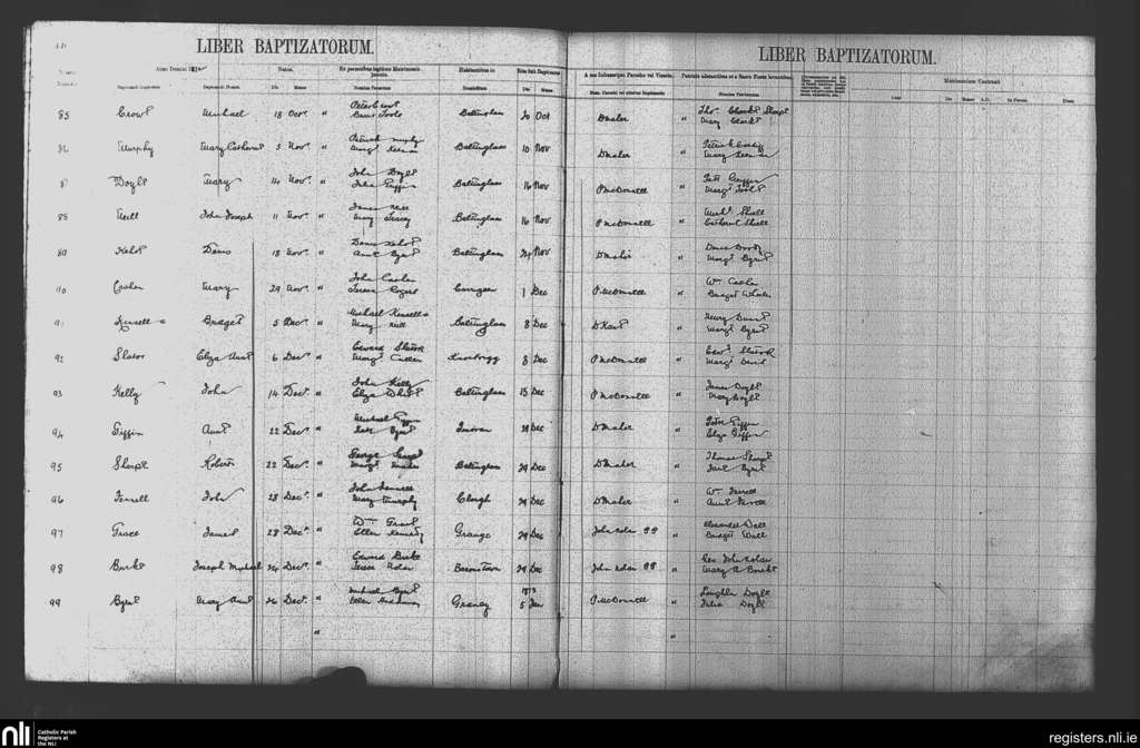 Baltinglass; County of Kildare, Wicklow; Diocese of Kildare and Leighlin. Baptisms, Oct. 1872 to Jan. 1873