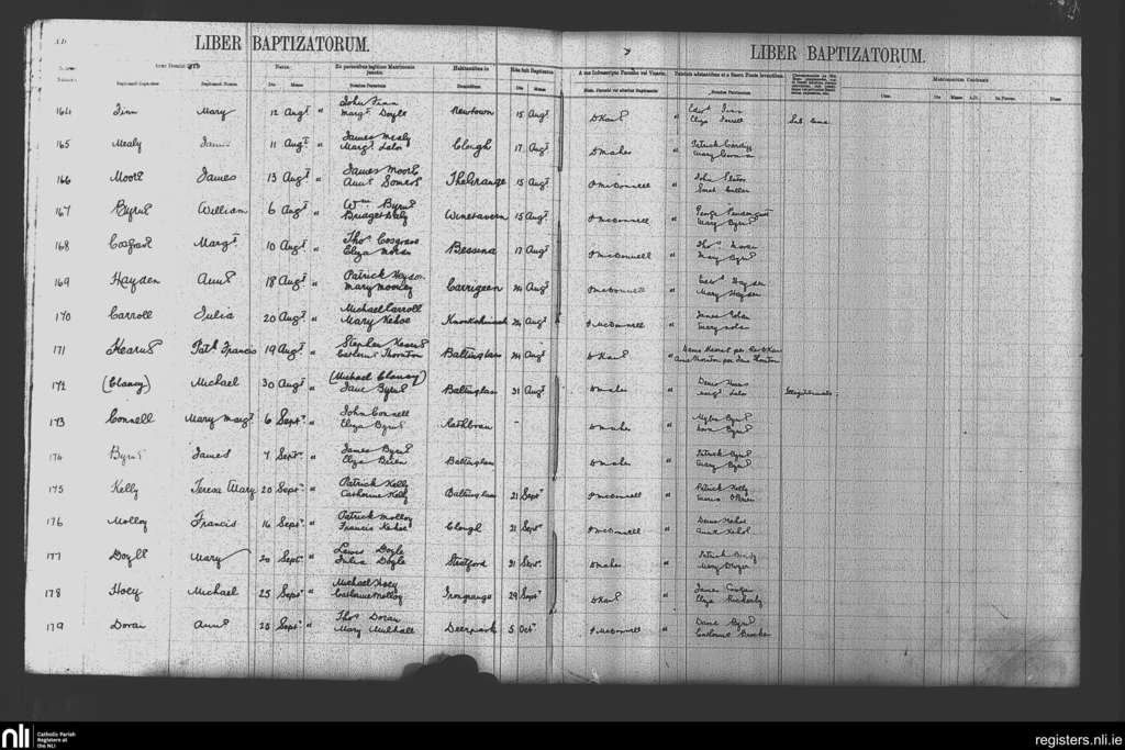 Baltinglass; County of Kildare, Wicklow; Diocese of Kildare and Leighlin. Baptisms, Aug. 1873 to Oct. 1873