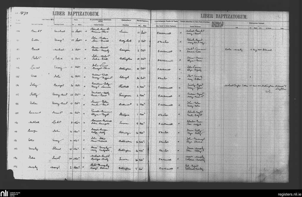 Baltinglass; County of Kildare, Wicklow; Diocese of Kildare and Leighlin. Baptisms, Sep. 1873 to Dec. 1873