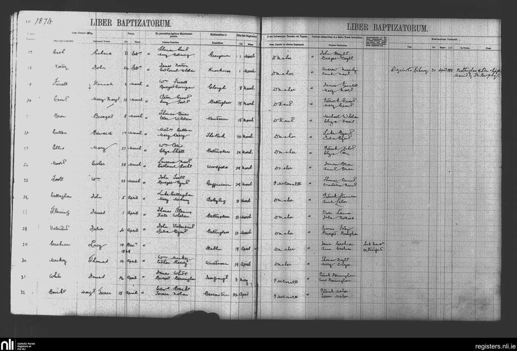 Baltinglass; County of Kildare, Wicklow; Diocese of Kildare and Leighlin. Baptisms, Mar. 1874 to May 1874