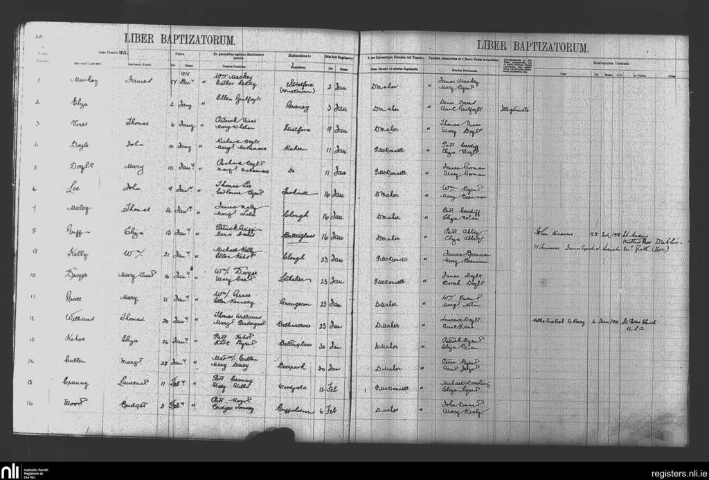 Baltinglass; County of Kildare, Wicklow; Diocese of Kildare and Leighlin. Baptisms, Jan. 1876 to Feb. 1876