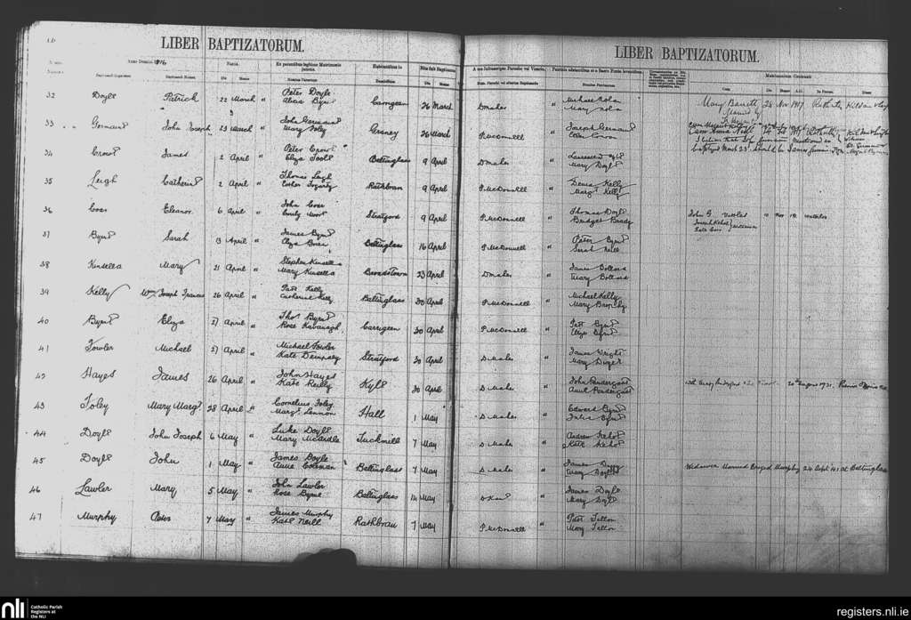 Baltinglass; County of Kildare, Wicklow; Diocese of Kildare and Leighlin. Baptisms, Mar. 1876 to May 1876