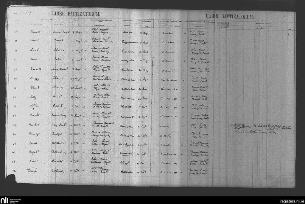 Baltinglass; County of Kildare, Wicklow; Diocese of Kildare and Leighlin. Baptisms, Aug. 1877 to Oct. 1877
