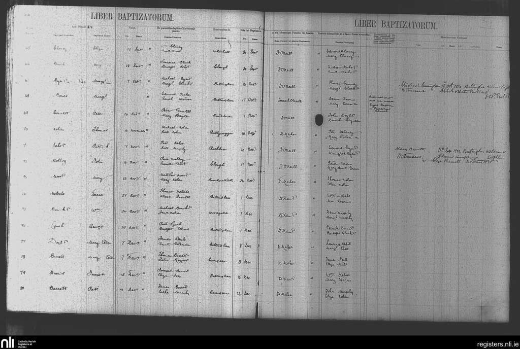 Baltinglass; County of Kildare, Wicklow; Diocese of Kildare and Leighlin. Baptisms, Sep. 1878 to Dec. 1878