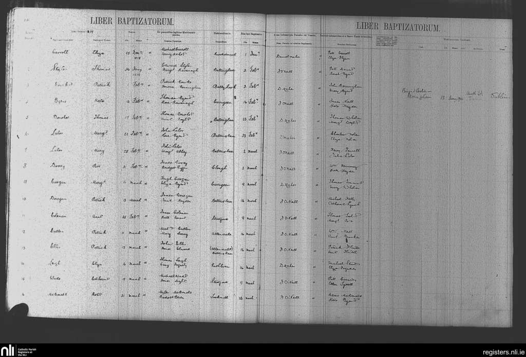 Baltinglass; County of Kildare, Wicklow; Diocese of Kildare and Leighlin. Baptisms, Jan. 1879 to Mar. 1879