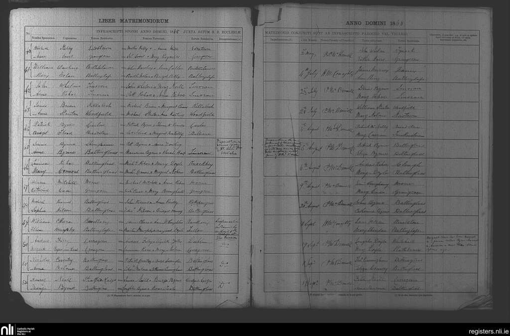 Baltinglass; County of Kildare, Wicklow; Diocese of Kildare and Leighlin. Marriages, May 1868 to Sep. 1868