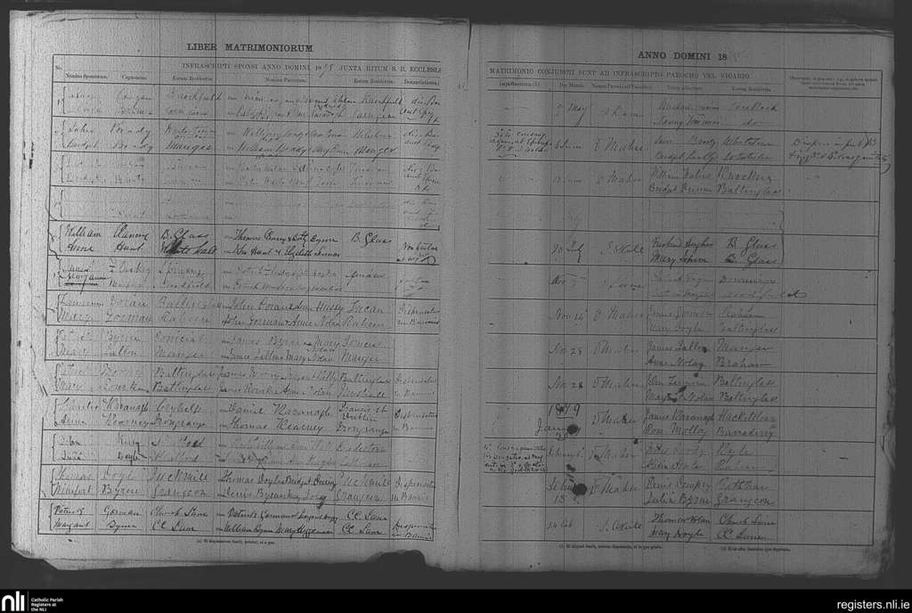 Baltinglass; County of Kildare, Wicklow; Diocese of Kildare and Leighlin. Marriages, May 1878 to Feb. 1879