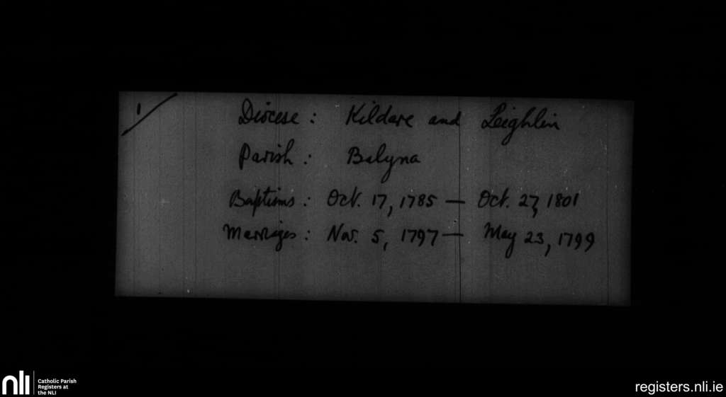 Balyna; County of Kildare; Diocese of Kildare and Leighlin. Baptisms, Marriages