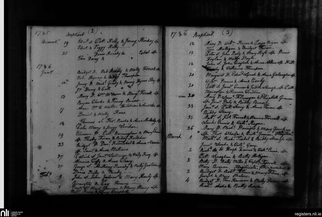 Balyna; County of Kildare; Diocese of Kildare and Leighlin. Baptisms, Dec. 1785 to Mar. 1786