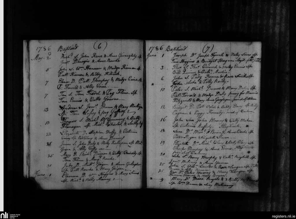 Balyna; County of Kildare; Diocese of Kildare and Leighlin. Baptisms, May 1786 to June 1786