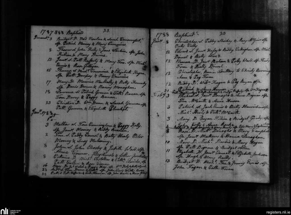 Balyna; County of Kildare; Diocese of Kildare and Leighlin. Baptisms, Dec. 1787 to Feb. 1788