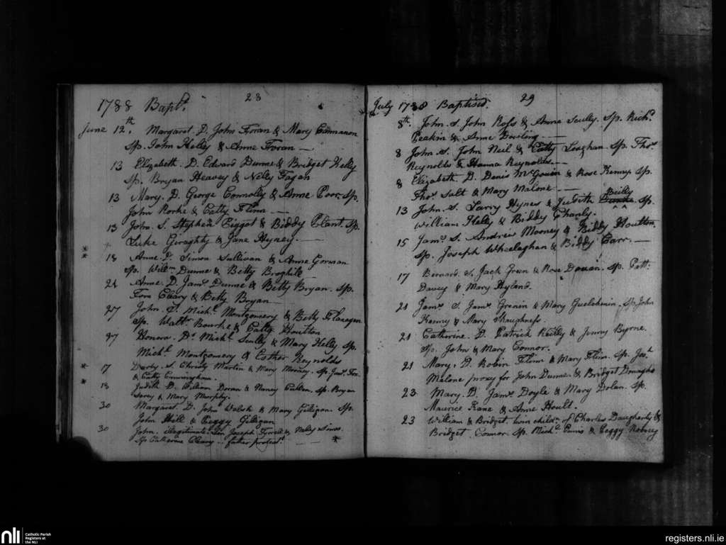 Balyna; County of Kildare; Diocese of Kildare and Leighlin. Baptisms, June 1788 to July 1788