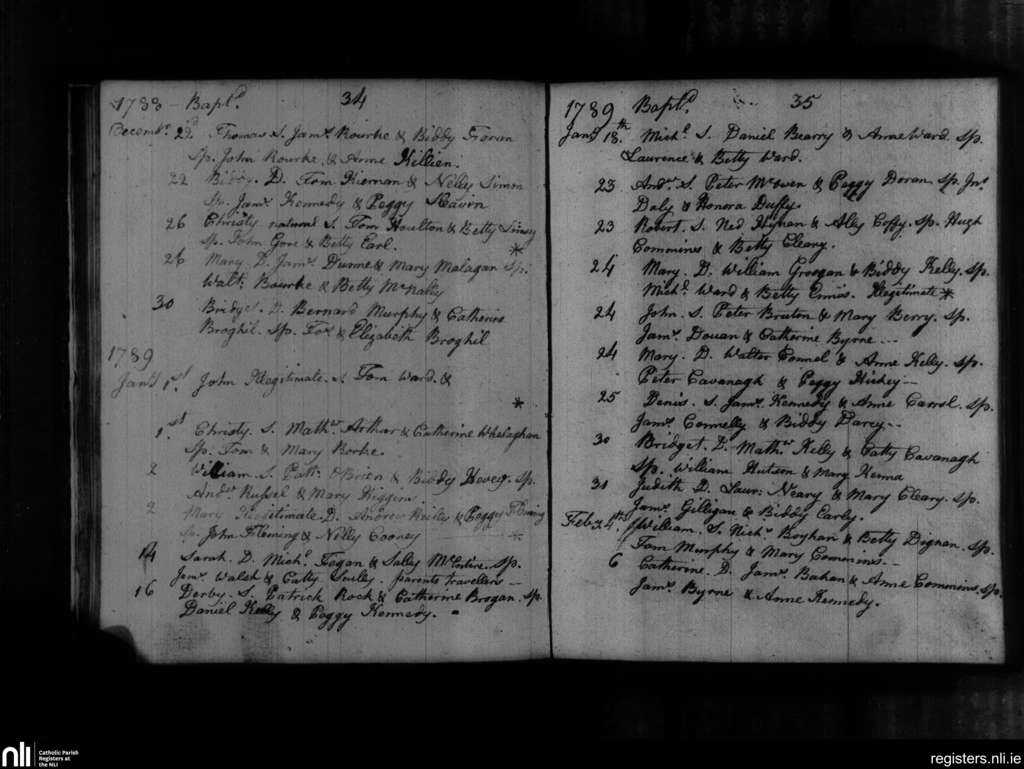Balyna; County of Kildare; Diocese of Kildare and Leighlin. Baptisms, Dec. 1788 to Feb. 1789