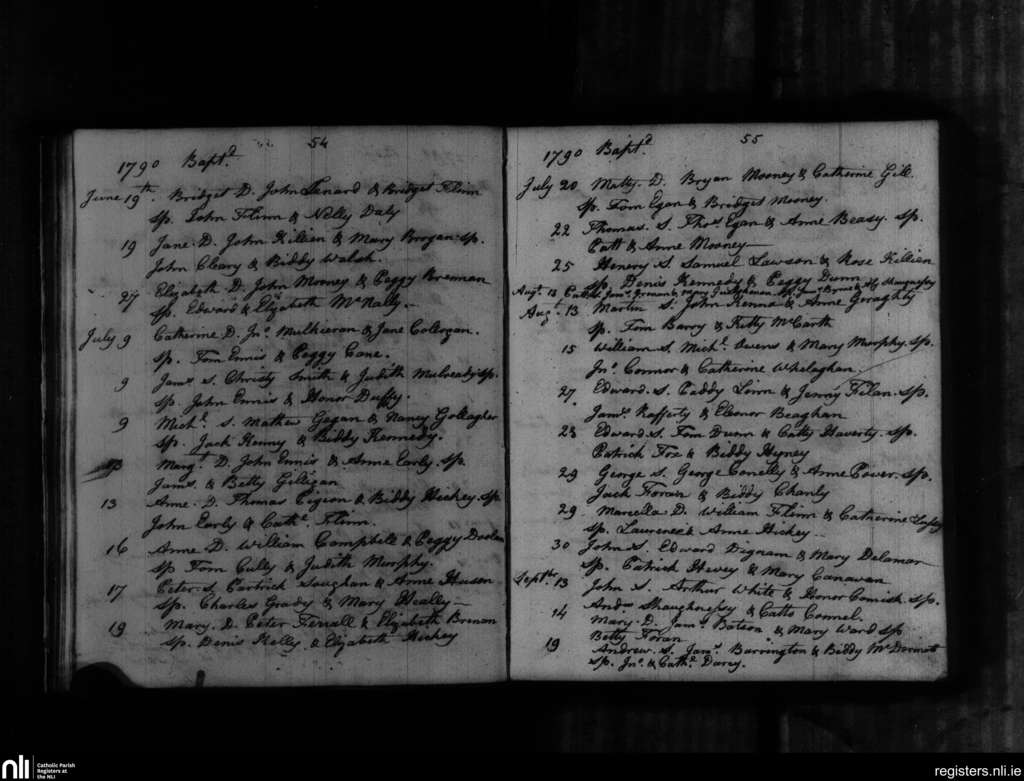 Balyna; County of Kildare; Diocese of Kildare and Leighlin. Baptisms, June 1790 to Sep. 1790