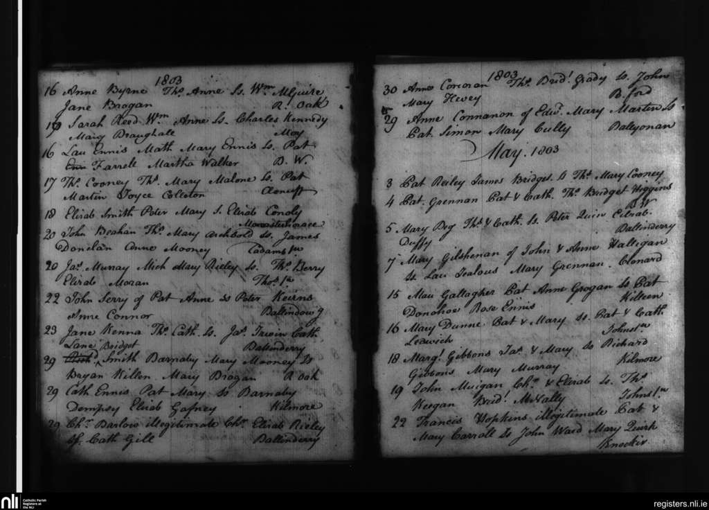 Balyna; County of Kildare; Diocese of Kildare and Leighlin. Baptisms, Apr. 1803 to May 1803