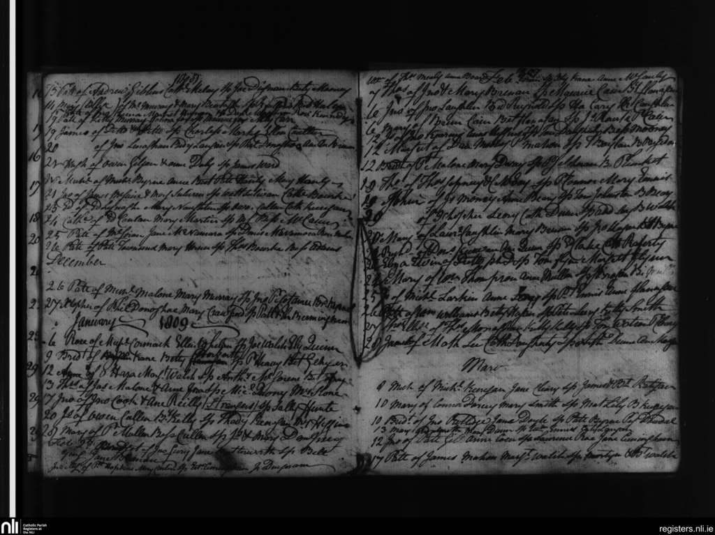 Balyna; County of Kildare; Diocese of Kildare and Leighlin. Baptisms, Nov. 1808 to Mar. 1809