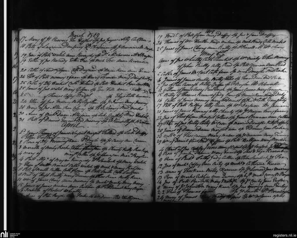 Balyna; County of Kildare; Diocese of Kildare and Leighlin. Baptisms, Mar. 1809 to June 1809