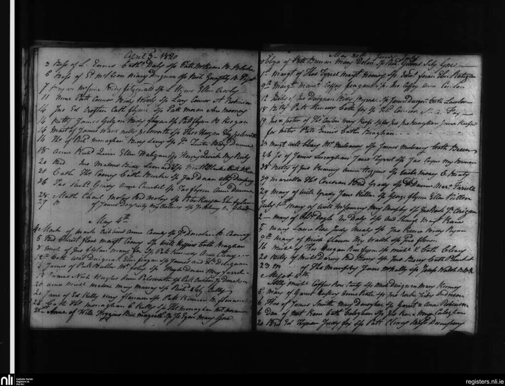 Balyna; County of Kildare; Diocese of Kildare and Leighlin. Baptisms, Apr. 1820 to Aug. 1820