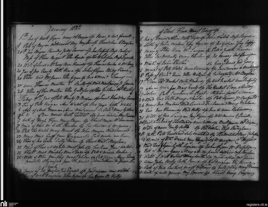 Balyna; County of Kildare; Diocese of Kildare and Leighlin. Baptisms, Jan. 1822 to Apr. 1822