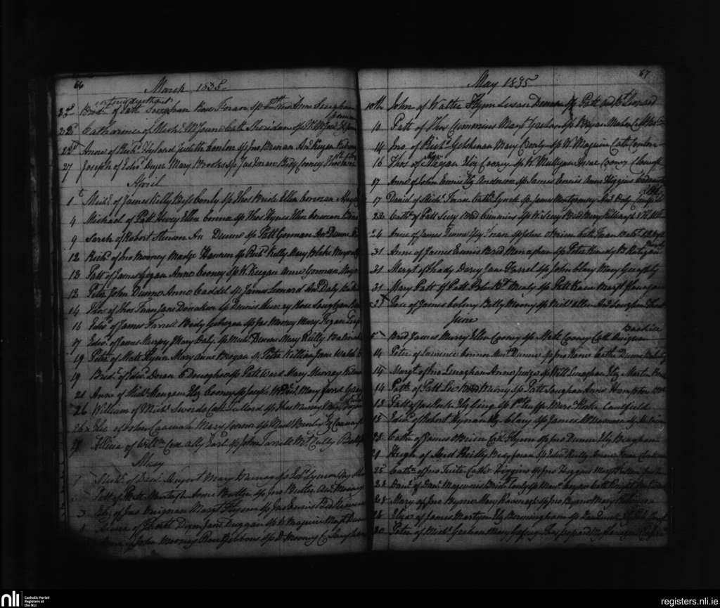 Balyna; County of Kildare; Diocese of Kildare and Leighlin. Baptisms, Mar. 1835 to June 1835