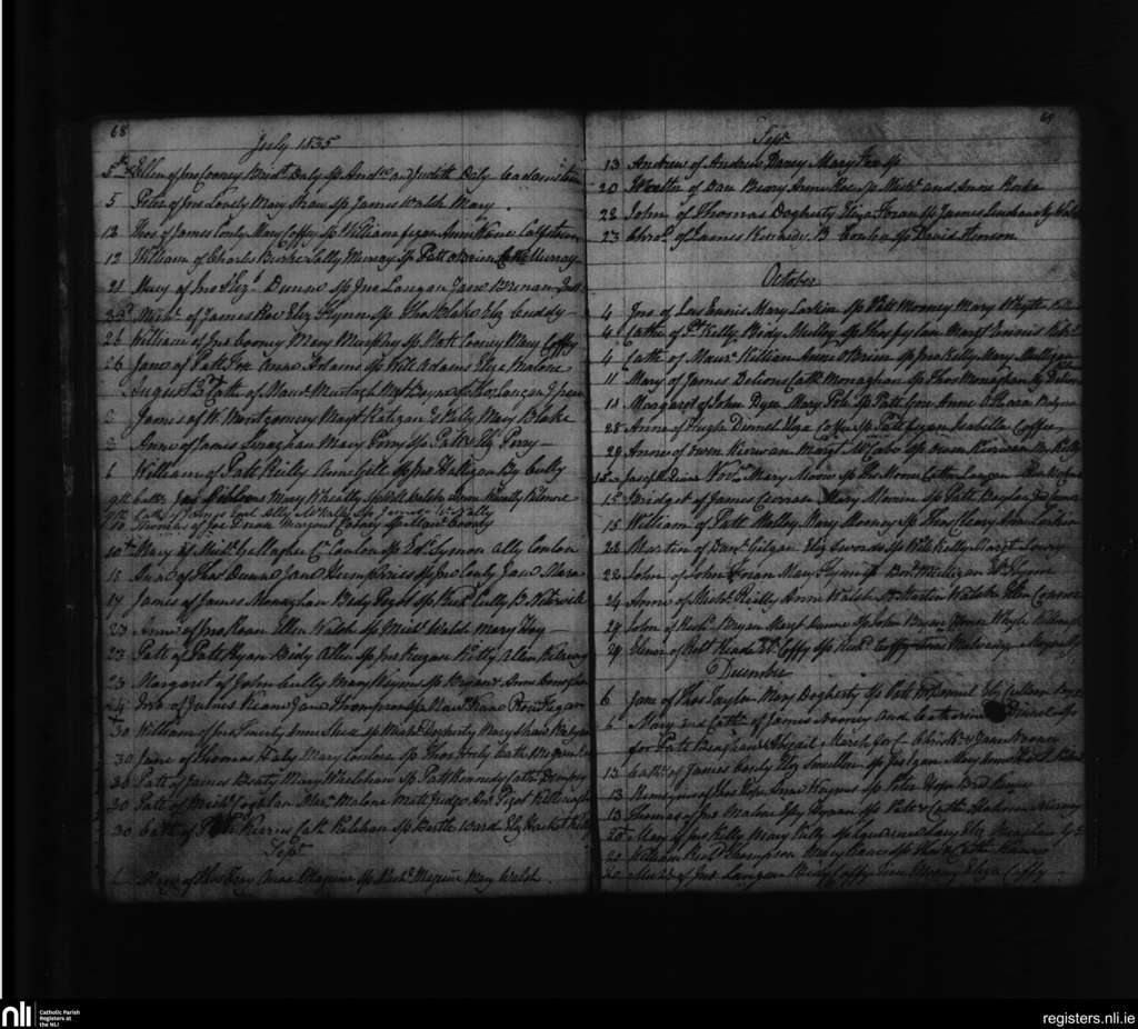 Balyna; County of Kildare; Diocese of Kildare and Leighlin. Baptisms, July 1835 to Dec. 1835