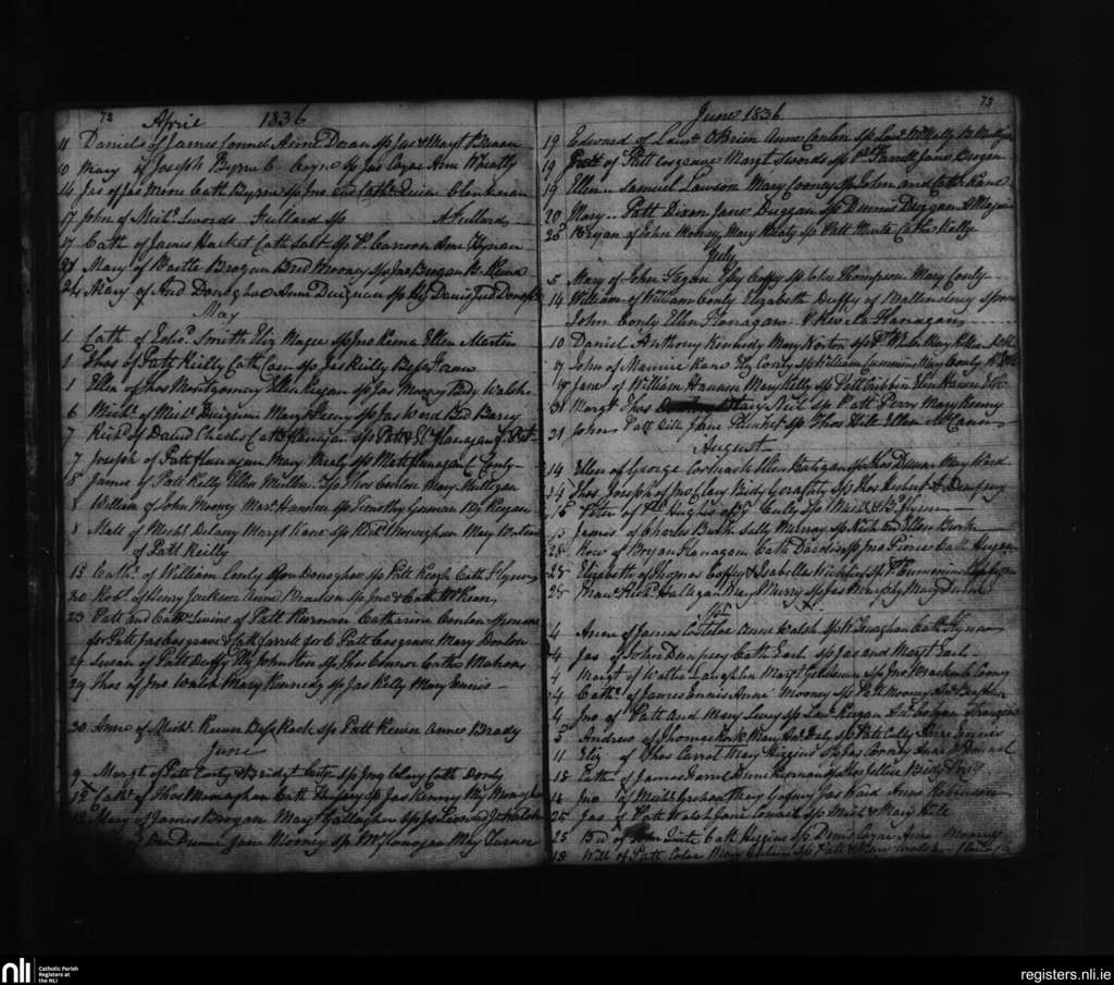 Balyna; County of Kildare; Diocese of Kildare and Leighlin. Baptisms, Apr. 1836 to Sep. 1836