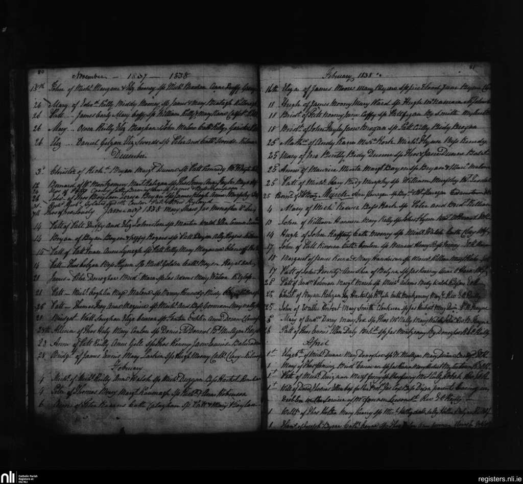 Balyna; County of Kildare; Diocese of Kildare and Leighlin. Baptisms, Nov. 1837 to Apr. 1838