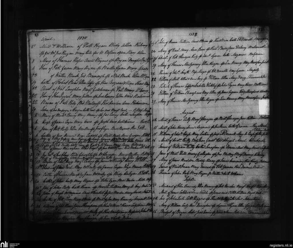 Balyna; County of Kildare; Diocese of Kildare and Leighlin. Baptisms, Apr. 1838 to Sep. 1838