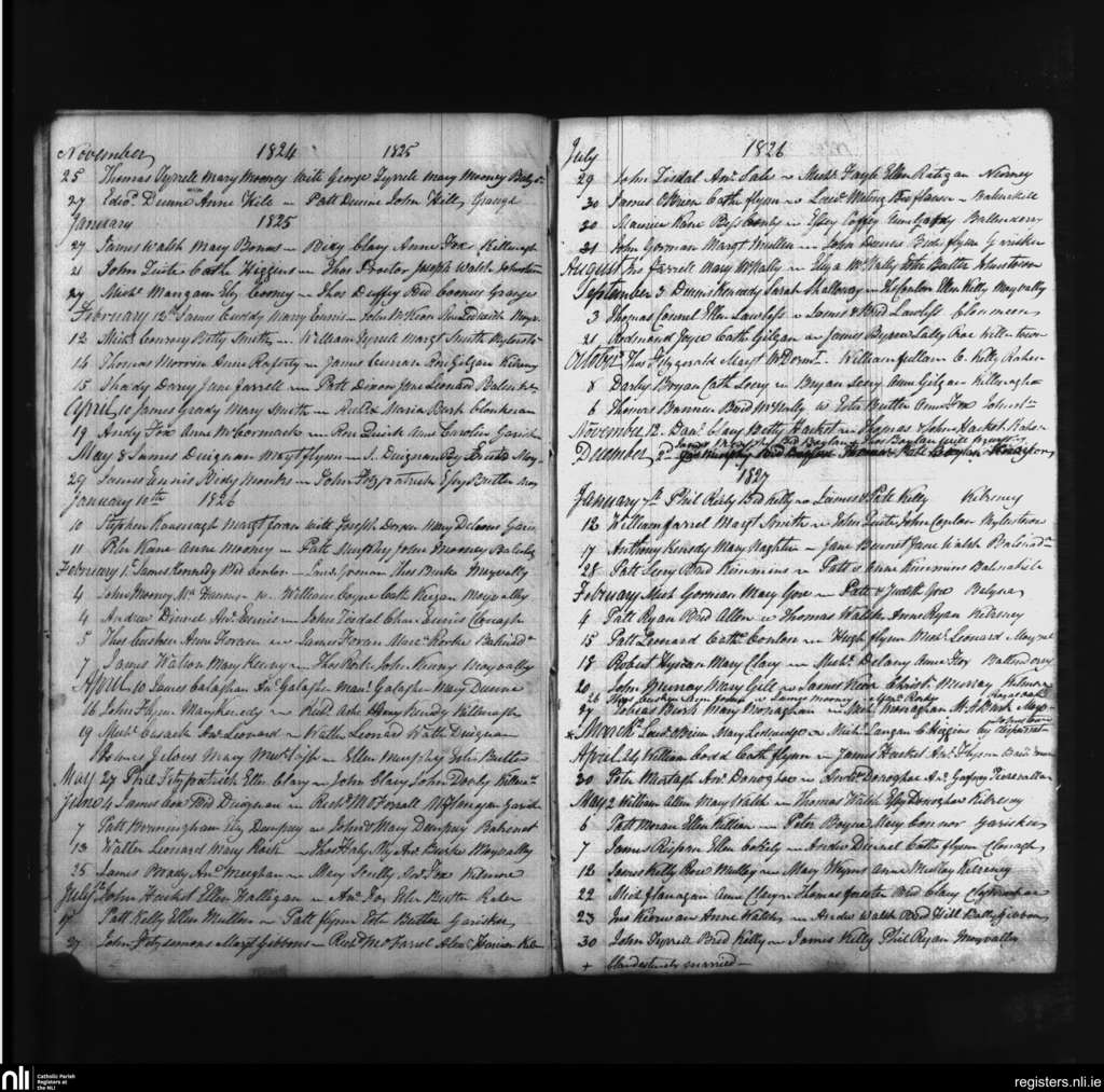 Balyna; County of Kildare; Diocese of Kildare and Leighlin. Marriages, Nov. 1824 to May 1827