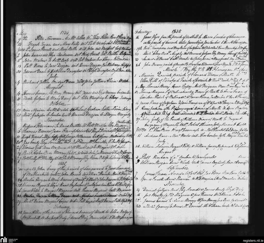 Balyna; County of Kildare; Diocese of Kildare and Leighlin. Marriages, May 1834 to Nov. 1835
