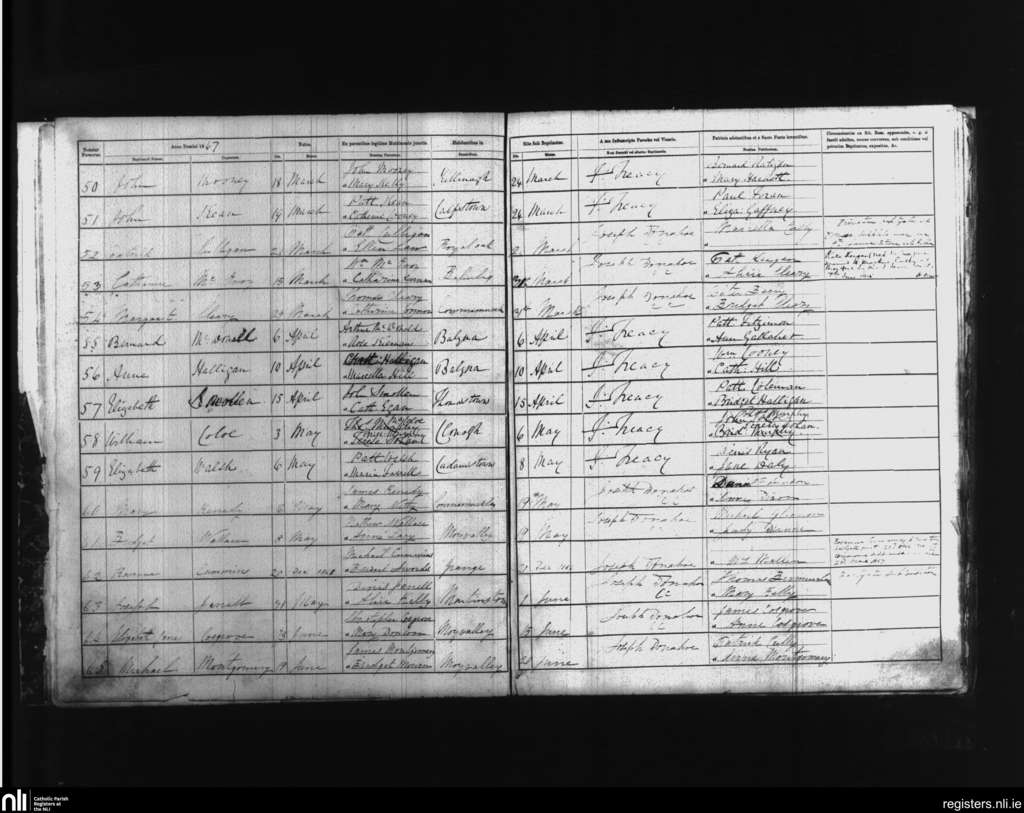 Balyna; County of Kildare; Diocese of Kildare and Leighlin. Baptisms, Mar. 1867 to June 1867
