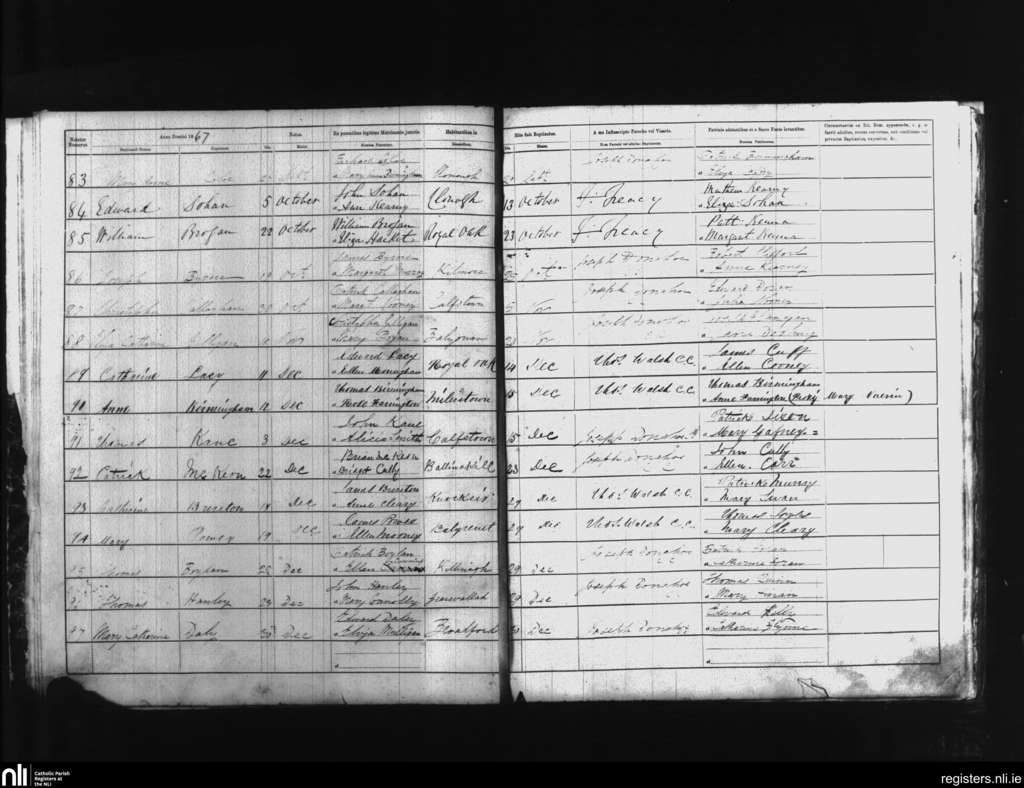 Balyna; County of Kildare; Diocese of Kildare and Leighlin. Baptisms, Sep. 1867 to Dec. 1867