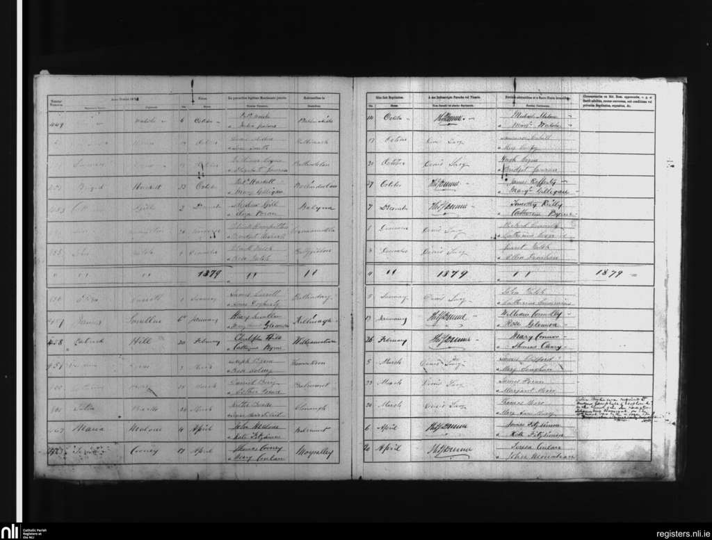 Balyna; County of Kildare; Diocese of Kildare and Leighlin. Baptisms, Oct. 1878 to Apr. 1879