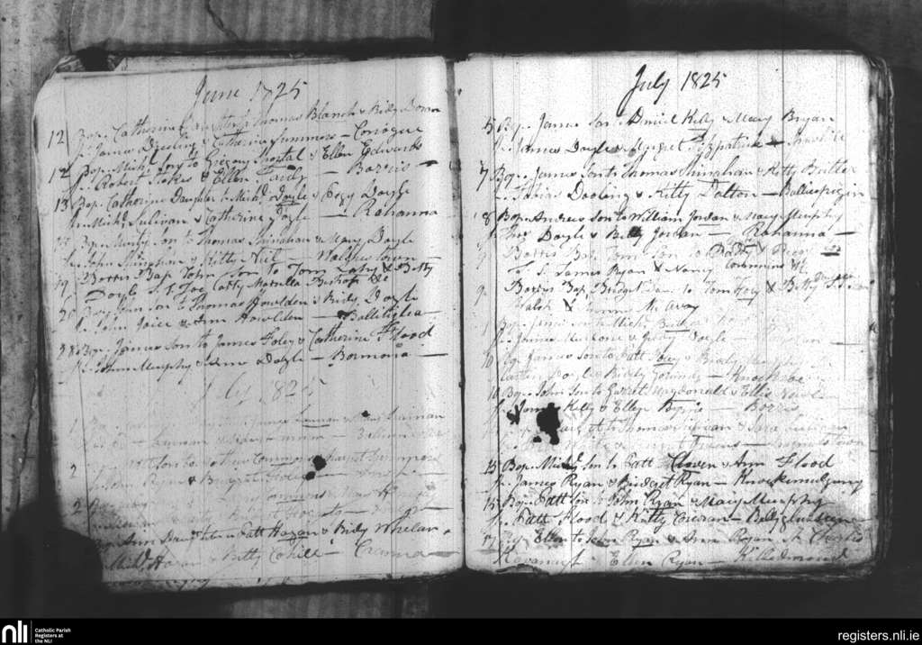 Borris; County of Wexford, Carlow; Diocese of Kildare and Leighlin. Baptisms, June 1825 to July 1825
