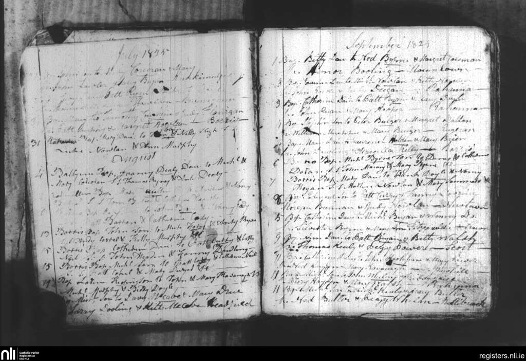 Borris; County of Wexford, Carlow; Diocese of Kildare and Leighlin. Baptisms, July 1825 to Sep. 1825