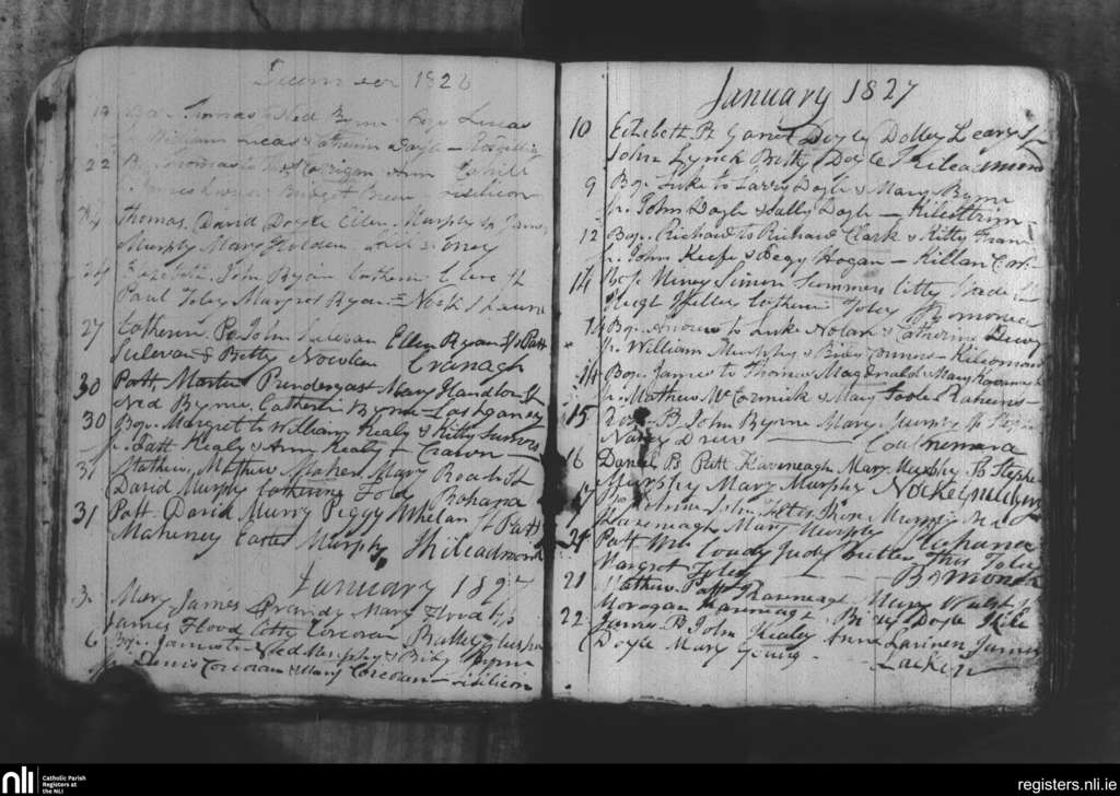 Borris; County of Wexford, Carlow; Diocese of Kildare and Leighlin. Baptisms, Dec. 1826 to Jan. 1827