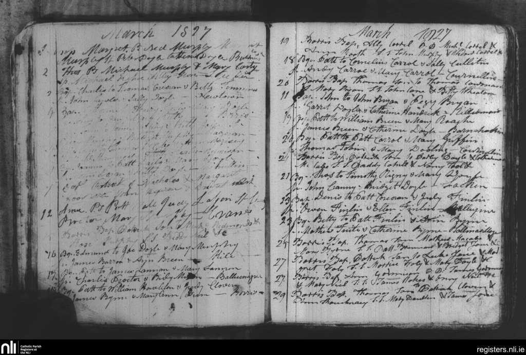 Borris; County of Wexford, Carlow; Diocese of Kildare and Leighlin. Baptisms, Mar. 1827