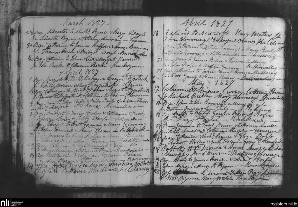Borris; County of Wexford, Carlow; Diocese of Kildare and Leighlin. Baptisms, Mar. 1827 to May 1827