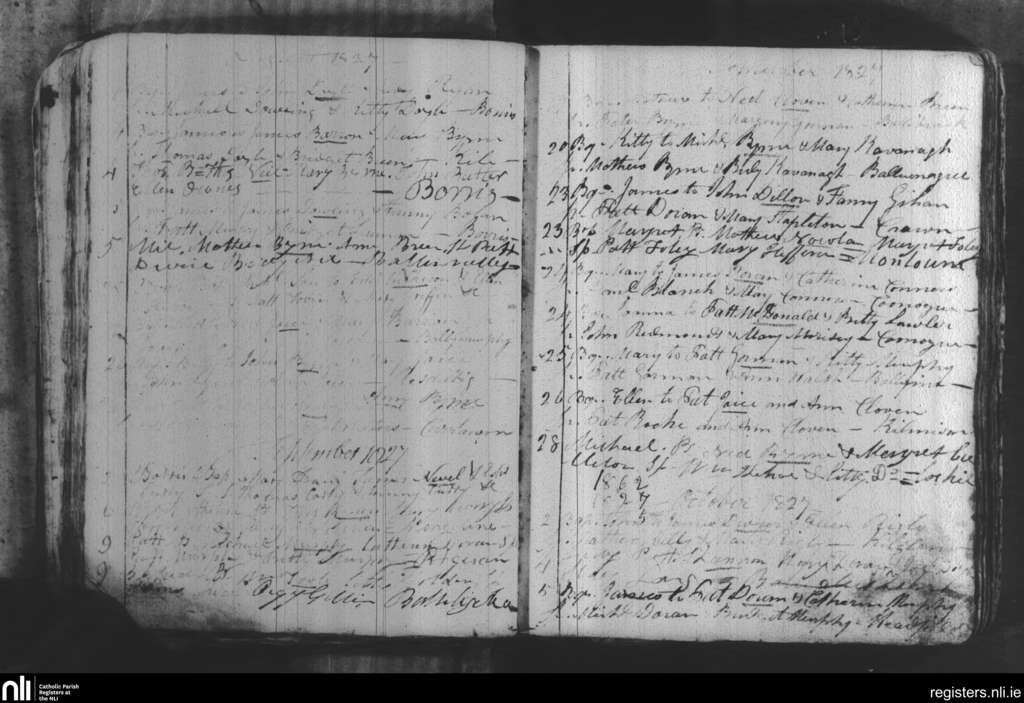 Borris; County of Wexford, Carlow; Diocese of Kildare and Leighlin. Baptisms, Aug. 1827 to Oct. 1827