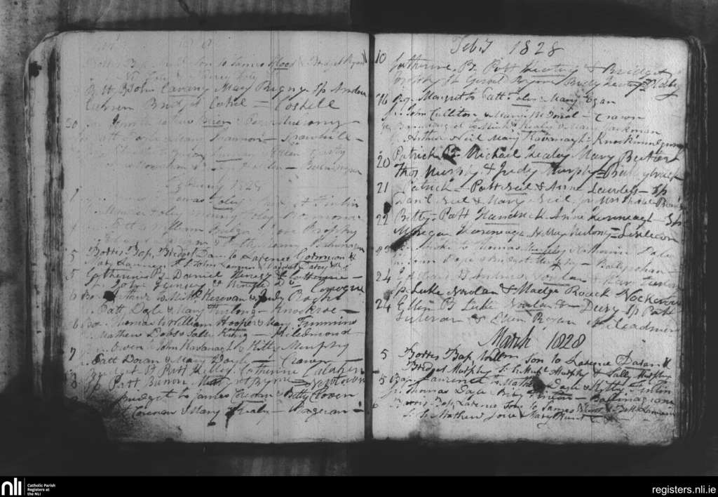 Borris; County of Wexford, Carlow; Diocese of Kildare and Leighlin. Baptisms, Jan. 1828 to Mar. 1828