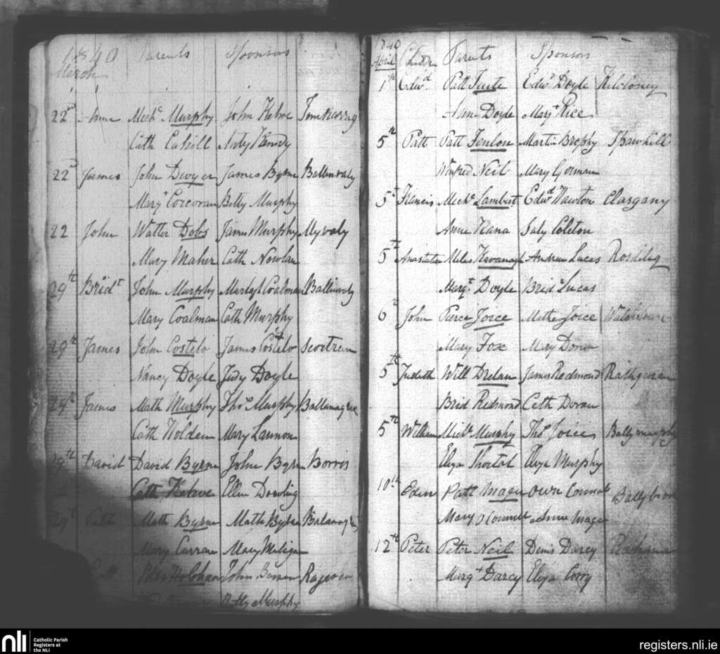 Borris; County of Wexford, Carlow; Diocese of Kildare and Leighlin. Baptisms, Mar. 1840 to Apr. 1840